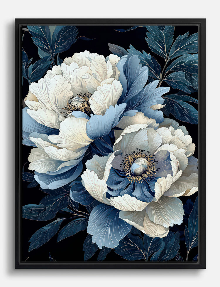 Soft petals in cool blue and creamy white invite a breath of calm into your space. This floral piece brings a sense of quiet sophistication, perfect for elevating your bedroom or creating a serene focal point in your living room. The dreamy color palette blends effortlessly with both modern and classic decor, so you can refresh your walls and feel proud of your unique style—no renovation required. Let your home bloom with beauty that feels both personal and effortlessly chic.