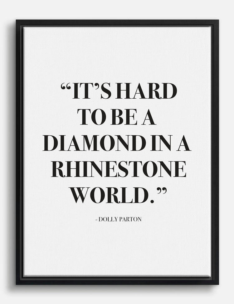 Bold words, big energy. This empowering Dolly Parton quote brings a spark of confidence to any space — a stylish reminder that your authenticity shines brightest. Perfect for your bedroom or home office, its crisp black-and-white palette pairs effortlessly with any decor. Let your walls inspire you daily to stand out, stay true, and celebrate your one-of-a-kind style. With Fab, transforming your home into a reflection of your strength is easy, affordable, and so you.