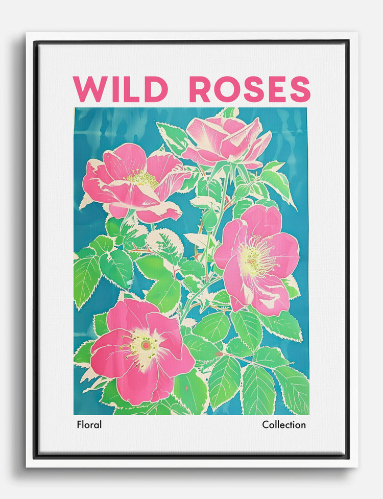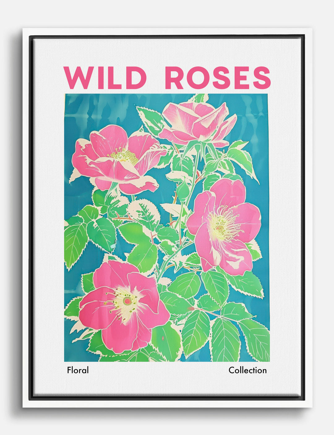 Vivid pink petals and lush green leaves pop against a cool blue backdrop, infusing your space with instant cheer. Wild Roses brings a breath of fresh air wherever it lands—perfect for brightening up your living room or adding a touch of joy to your bedroom sanctuary.