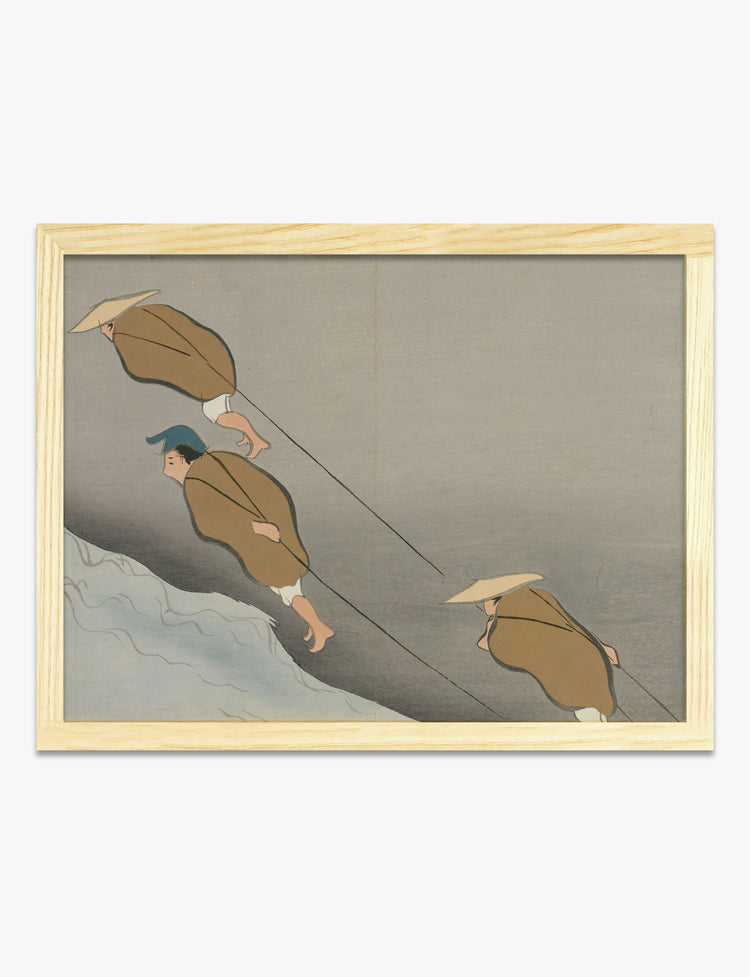 Eine leise Stärke durchzieht dieses eindrucksvolle Werk von Kamisaka Sekka. Drei Figuren, in erdigen Brauntönen und gedämpften Farben gehüllt, stemmen sich gegen den Wind, während sie einen Flussuferweg entlanggehen – und verleihen Ihren Wänden ein Gefühl von Bewegung und Zielstrebigkeit. Dieses Kunstwerk strahlt ruhige Entschlossenheit aus – das ideale Highlight für Ihr Wohnzimmer oder Arbeitszimmer, wo Fokus und Inspiration stets willkommen sind. Die subtile Palette aus Grau und Beige ist mühelos vielseitig und fügt sich nahtlos sowohl in modernes als auch in traditionelles Interieur ein. Lassen Sie sich täglich von diesem Poster erinnern: Fortschritt ist schön, selbst wenn der Weg bergauf führt. Sie werden lieben, wie es jeden Raum in einen persönlichen Rückzugsort verwandelt – stilvoll, einzigartig und voller Geschichte.
