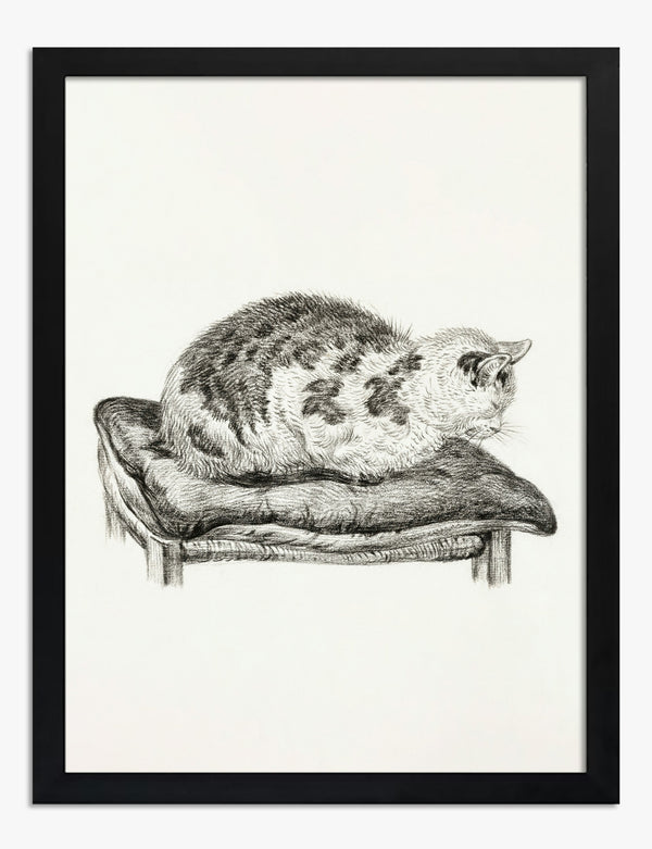Poster Nachdenkliche Katze – Vintage-Skizze in Grautönen