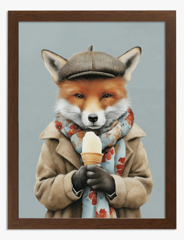 Poster Elegant gekleideter Terrier mit Eiswaffel – Vintage-Look