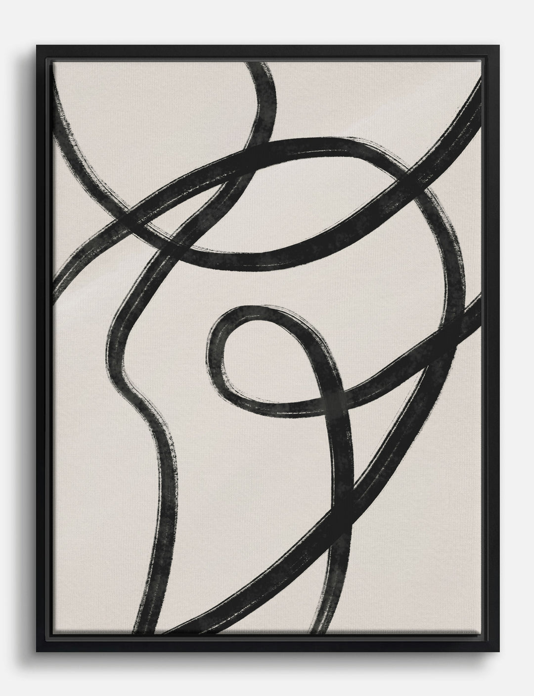 Let your walls dance with the fluidity of black lines on a serene beige backdrop. This abstract piece brings a sense of movement and modern elegance to any room it graces. Perfect for your living room or office, its minimalist palette effortlessly complements a myriad of decor styles, infusing your space with a touch of contemporary sophistication and artistic flair.