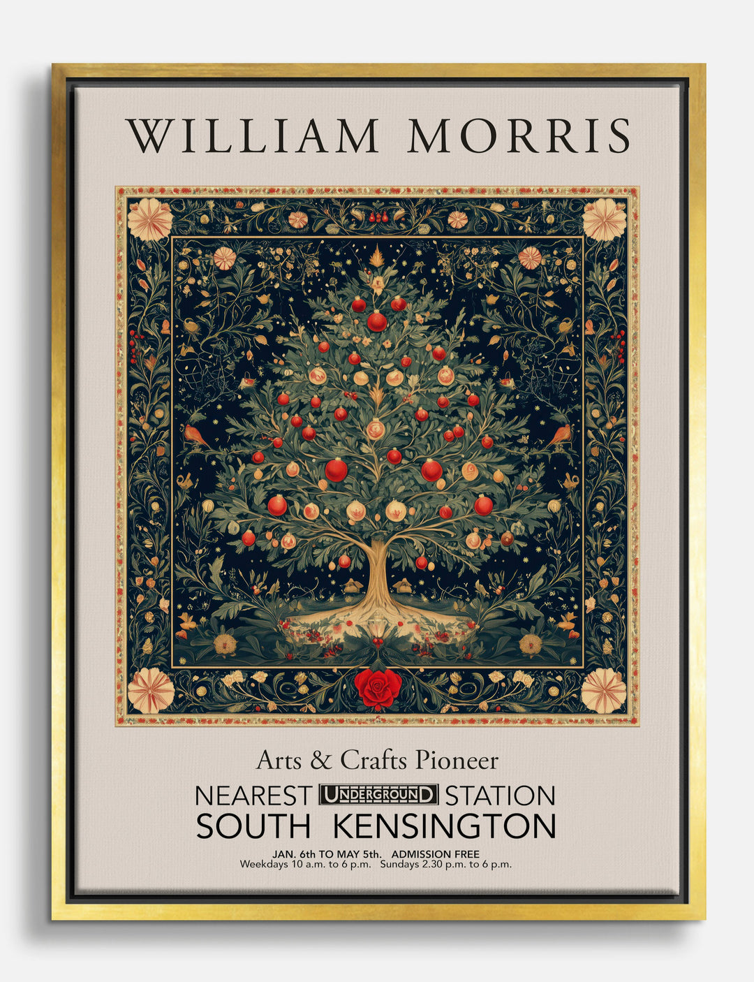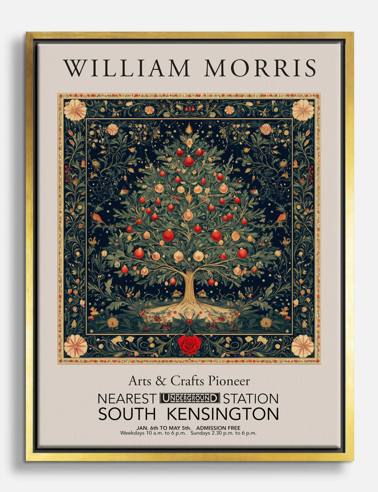 A tapestry of midnight greens and rich berries, this William Morris piece brings timeless elegance to your home. Imagine the gentle glow of winter lights, a tree brimming with intricate fruits and florals, instantly transforming your space into a cozy haven. The deep, vintage palette elevates both modern and classic settings—perfect for your living room or bedroom. Let this iconic design fill your walls with warmth, beauty, and a touch of holiday magic, all year round.