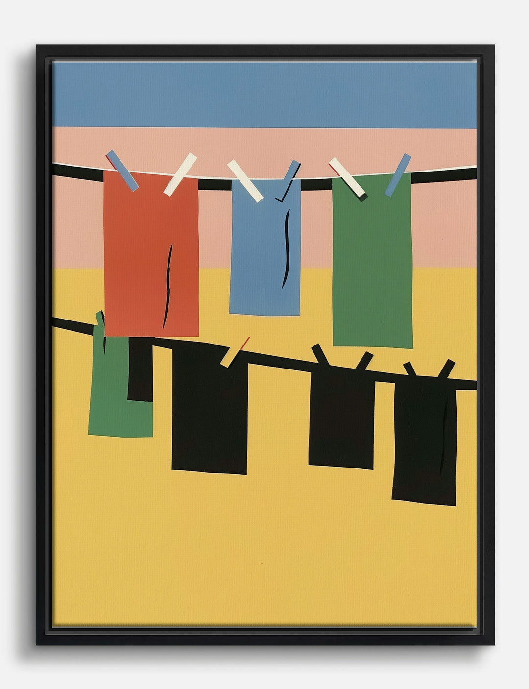 Brighten your space with a playful splash of color. This vibrant artwork captures the essence of everyday joy, turning a simple laundry line into a captivating display. Perfect for a cozy corner in your living room or a creative touch in your kitchen, its bold hues effortlessly complement any decor style. Transform your home into a canvas of expression and delight.