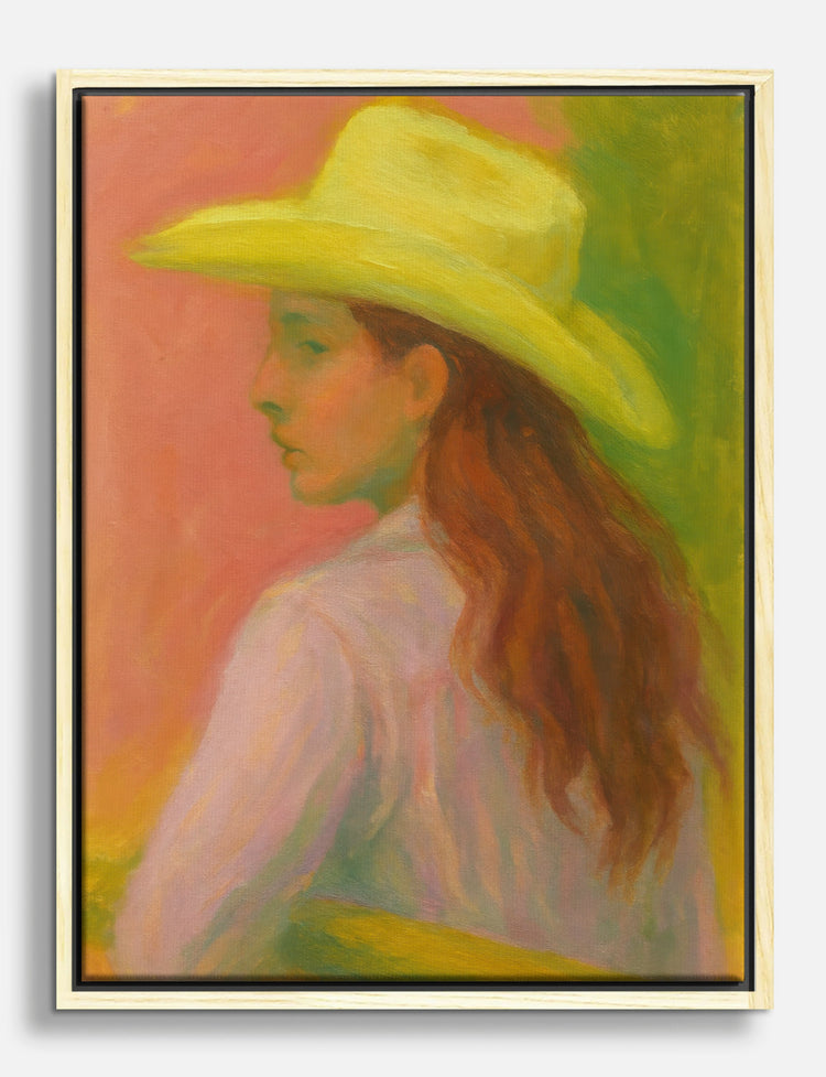 Feel the serene charm of the West with this captivating portrait. A gentle blend of pinks and greens creates a soft, dreamy atmosphere, perfect for adding a touch of warmth to your bedroom or living room. Let this piece become a stylish reminder of quiet strength and timeless elegance.