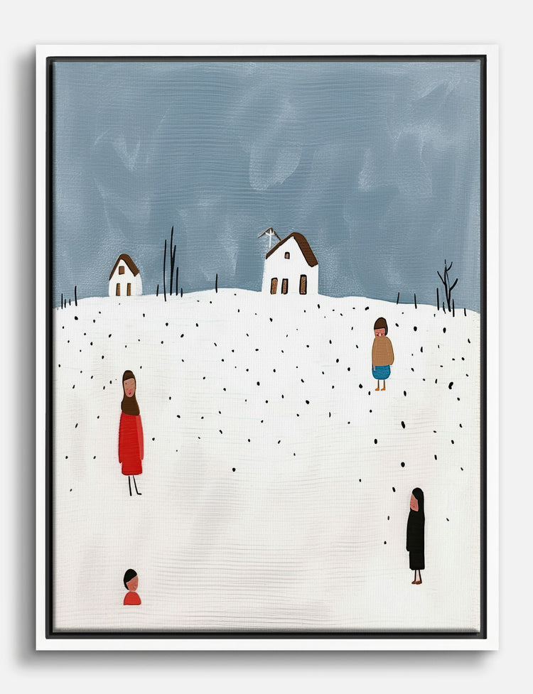 A snow-blanketed field dotted with tiny, whimsical figures invites a sense of quiet wonder. This piece brings the magic of winter indoors, turning your space into a scene of calm connection and gentle curiosity. The crisp whites and soft blues pop against any wall, and the playful characters add a touch of storybook charm—perfect for your living room or bedroom. Youll love how it sparks imagination and warmth, making your home feel truly one-of-a-kind.
