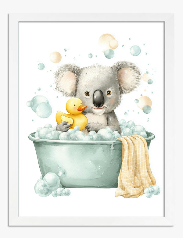 Poster Koala im Schaumbad mit Quietscheente – Aquarell, Kinderzimmer