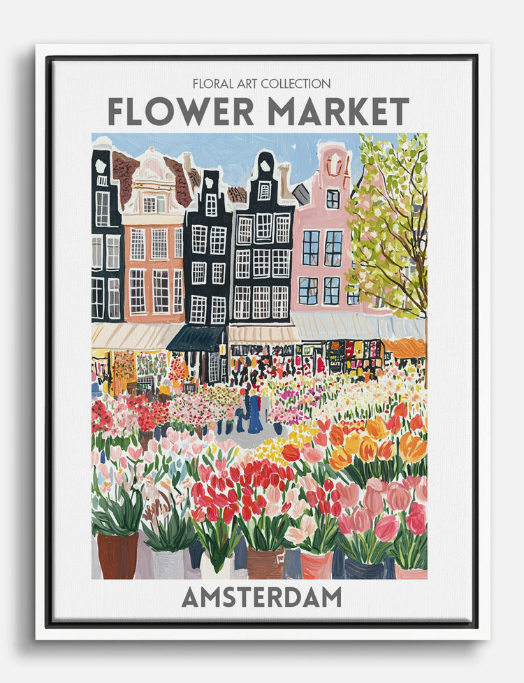 Dive into the vibrant charm of Amsterdam with this delightful floral scene. Let the bustling energy of a flower market fill your living space with color and joy. Perfect for your living room or kitchen, the lively hues will effortlessly complement your decor, bringing a touch of European elegance into your home. Embrace the pride of transforming your space with a piece thats as unique as your style.