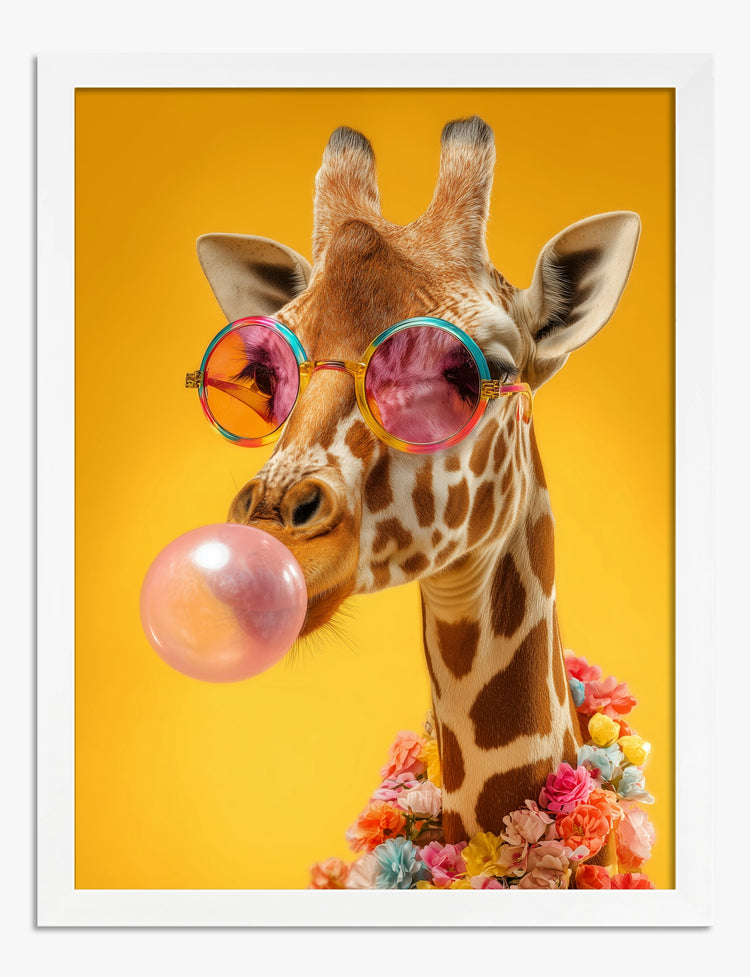Bold. Playful. Unforgettable. This giraffe doesn’t just stand tall—it stands out, rocking oversized pink sunnies and a bubblegum pop that’s pure personality. Bring a burst of joy and a wink of humor to your favorite space—perfect for the living room, entryway, or anywhere your style could use a little extra fun. The sun-drenched yellow background and lively floral garland instantly brighten up modern or eclectic décor, making any wall feel more alive. You’ll love how this piece sparks conversation and invites smiles, day after day. Great style isn’t about rules—it’s about choosing what makes you happy. Let this giraffe be your daily reminder to celebrate your one-of-a-kind taste.