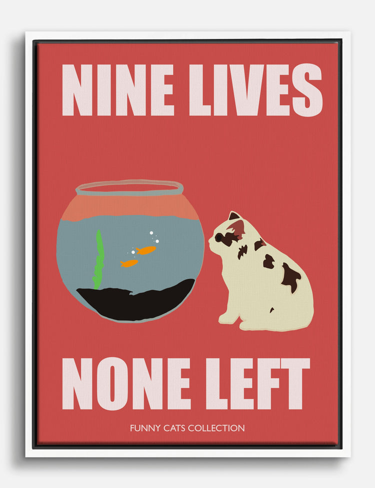 A playful scene unfolds: a curious cat eyes a fishbowl, humor and mischief in the air. This print brings a pop of personality to your space, perfect for anyone who loves a little wit alongside their decor. The bold red background and cheeky illustration instantly energize a living room, office, or even a cozy reading nook.