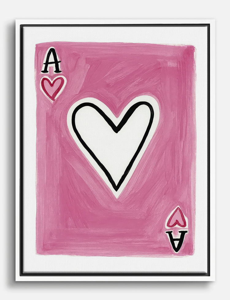 Big love, bold style — this piece is all heart, literally. A playful twist on the classic ace of hearts, its hand-painted pink washes and graphic white heart bring instant energy and charm to your walls. Perfect for your bedroom or living room, it adds a pop of personality wherever you want a little extra joy. The pink palette is surprisingly versatile, pairing effortlessly with neutrals, metallics, or even more color for a fun, layered look. Youll love how it makes your space feel more you — vibrant, welcoming, and full of heart. Why settle for ordinary when you can show off your playful side and create a space that feels as unique as you are?