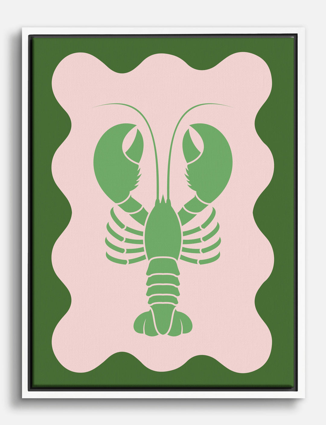Make a splash in your kitchen with this whimsical lobster illustration—where retro charm meets modern flair. The soft sage green pops against a blush pink backdrop, instantly perking up your space with a fresh, playful twist.