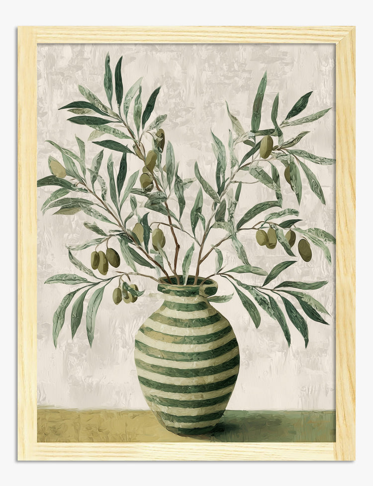 Sanfte, salbeigrüne Blätter und zarte Oliven verleihen Ihren Wänden eine erfrischende Ruhe. Dieses Poster hellt jeden Raum sofort auf – mit zurückhaltender Eleganz und einem Hauch mediterranen Charmes.