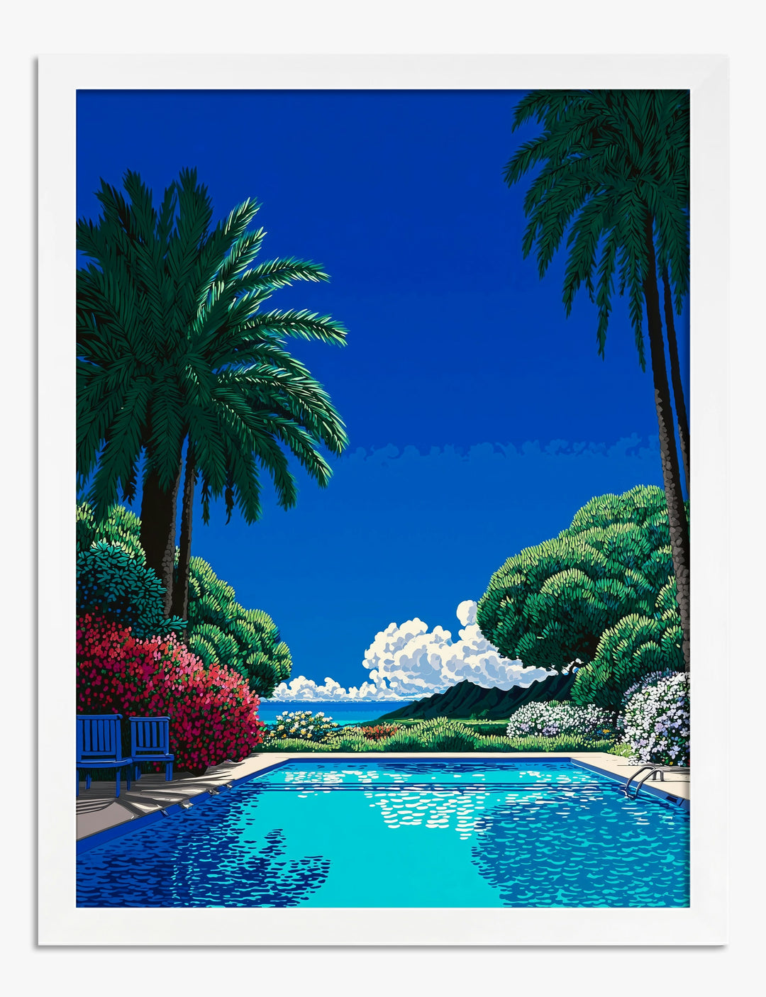 Is there anything more inviting than a cool blue pool beneath a sky that feels endless? This vibrant scene is your ticket to instant vacation mode, right from your own living room. The lush palms, sculpted greenery, and sparkling water combine to create pure serenity—no passport required. Let this piece bring a burst of energy and relaxation into your favorite space. Its bold blues and crisp greens are perfect for modern, eclectic, or even minimalist decor, adding a fresh pop that makes your home feel like a private resort. You’ll love how effortlessly it transforms a blank wall into a getaway you’ll be proud to show off. Whether it’s the centerpiece above your sofa or a daily mood-booster in your bedroom, this print invites you to soak up the good life, every single day.