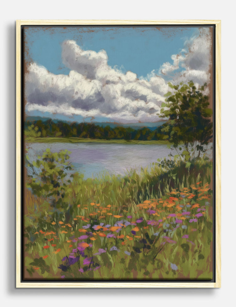 A burst of wildflowers and a shimmering lake—this piece radiates the freedom of open skies and endless possibilities. Every glance feels like a breath of fresh air, infusing your space with calm and color.