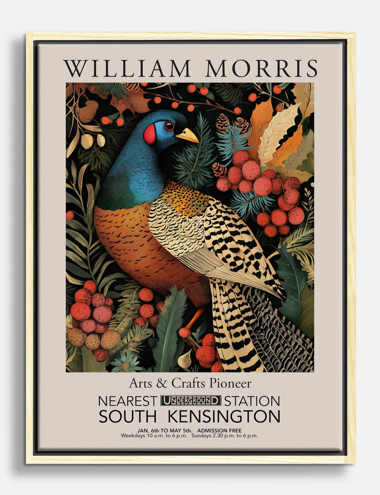 A burst of color and charm, this William Morris-inspired pheasant brings warmth and whimsy to your walls. Rich berries, lush foliage, and intricate feathers create a scene that feels both festive and timeless.