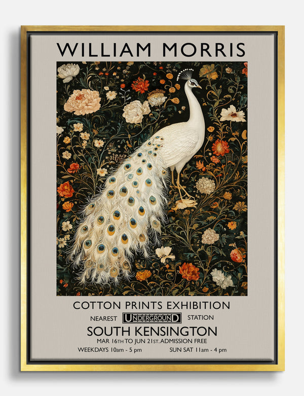 Poster Pfau zwischen goldenen Blüten – im Stil von William Morris