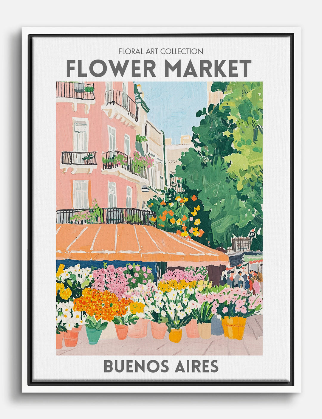 Feel the vibrant energy of Buenos Aires with this lively flower market scene. Bursting with color, this piece is perfect for adding a touch of charm to your living room or kitchen. The playful palette of pinks, greens, and oranges complements a variety of decor styles, making it an effortless addition to your space. Transform your home into a joyful, stylish retreat where every glance brings a smile.