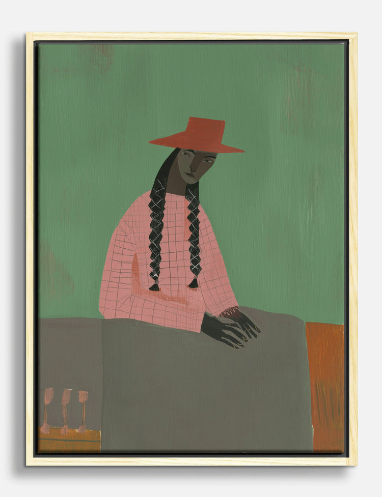 A quiet confidence radiates from this serene portrait, where soft green and warm terracotta tones invite calm into your space. The gentle gaze, braided hair, and easy posture evoke a slow, sunlit afternoon — a gentle reminder to savor the simple moments. Let this piece anchor your living room or add a touch of thoughtful style to your bedroom. Its earthy palette pairs effortlessly with both modern neutrals and bold, eclectic accents, making it a versatile fit for your unique style. You’ll love how this artwork brings a sense of grounded beauty and personal expression to your home. It’s not just a finishing touch — it’s a statement of your style, made wonderfully accessible.