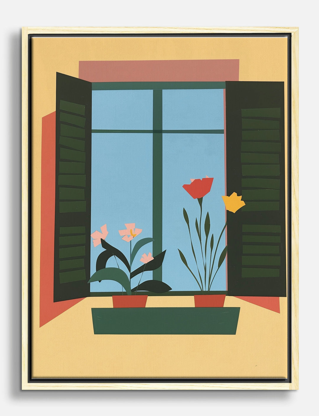 Step into a world where simplicity meets charm. This delightful piece captures the essence of a serene day, with vibrant flowers framed by an open window. Its perfect for adding a splash of color to your living room or bedroom, creating a cozy and inviting atmosphere. The bold use of colors complements modern and minimalist decor, making it an effortless choice for a stylish transformation. Let this artwork bring a touch of nature and warmth into your home, making every glance a joyful experience.