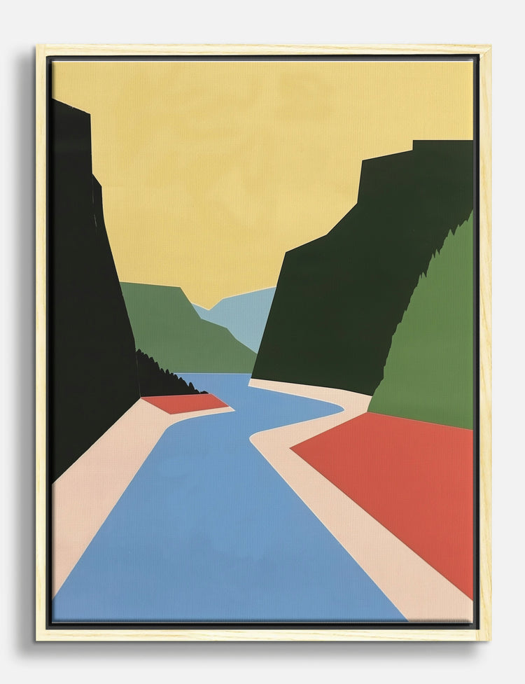 Let the calming curves of this abstract river scene bring a touch of serenity to your space. The bold colors and minimalist design create a harmonious balance, perfect for your living room or office. Youll love how the vibrant hues complement any decor, adding a splash of style and inspiration to your home.