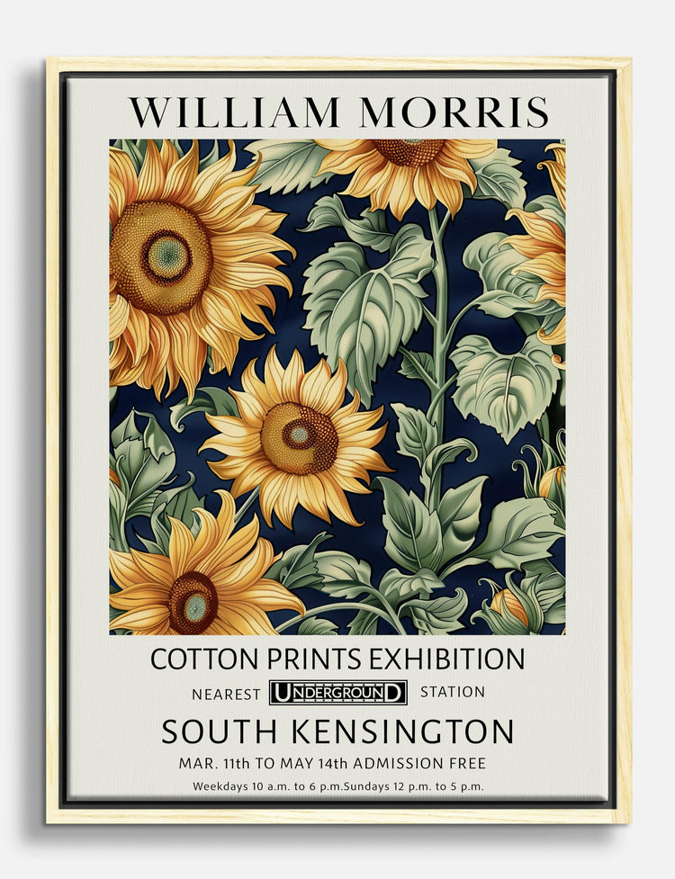 Sunflowers burst with vintage charm in this William Morris-inspired piece, instantly adding a touch of classic artistry to your space. The golden blooms and lush green leaves pop against a deep, dramatic background, making any wall feel both lively and timeless.