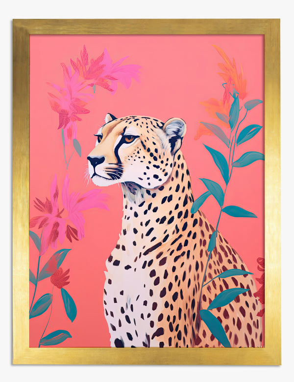 Poster Wild Grace Botanisch mit Gepard in Rosétönen