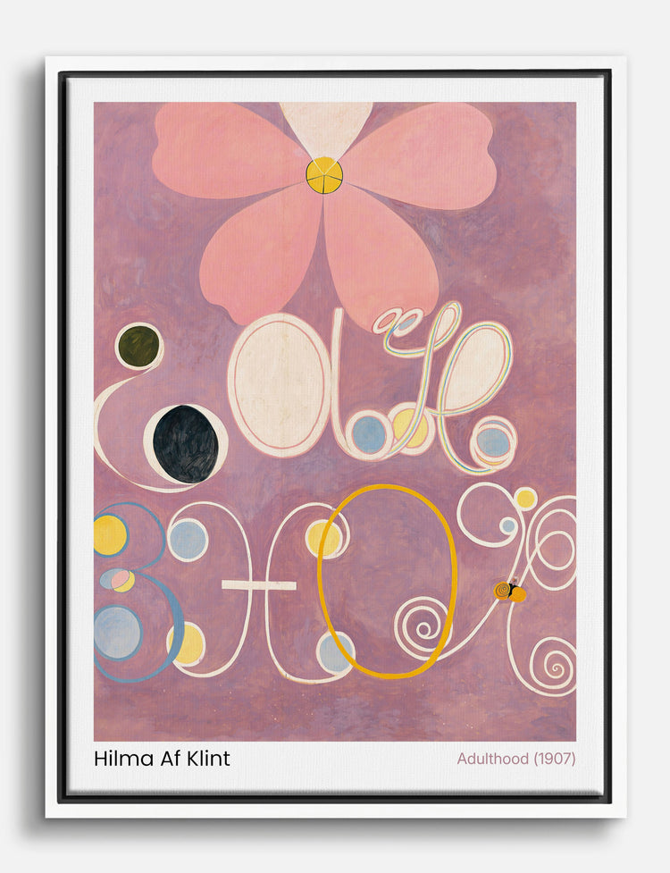 Big, bold, and beautifully uplifting — this Hilma Af Klint piece instantly energizes your space. Swirling pastel shapes and a striking floral motif come together in a celebration of growth, possibility, and transformation.