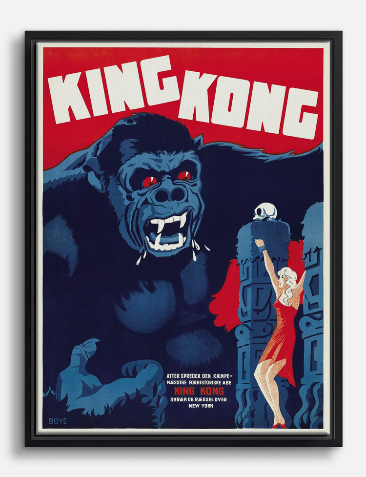 A dramatic clash of color and energy, this vintage King Kong poster instantly electrifies your space. The bold reds and deep blues create a cinematic mood—perfect for sparking conversation in your living room or adding a pop of retro flair to your office.