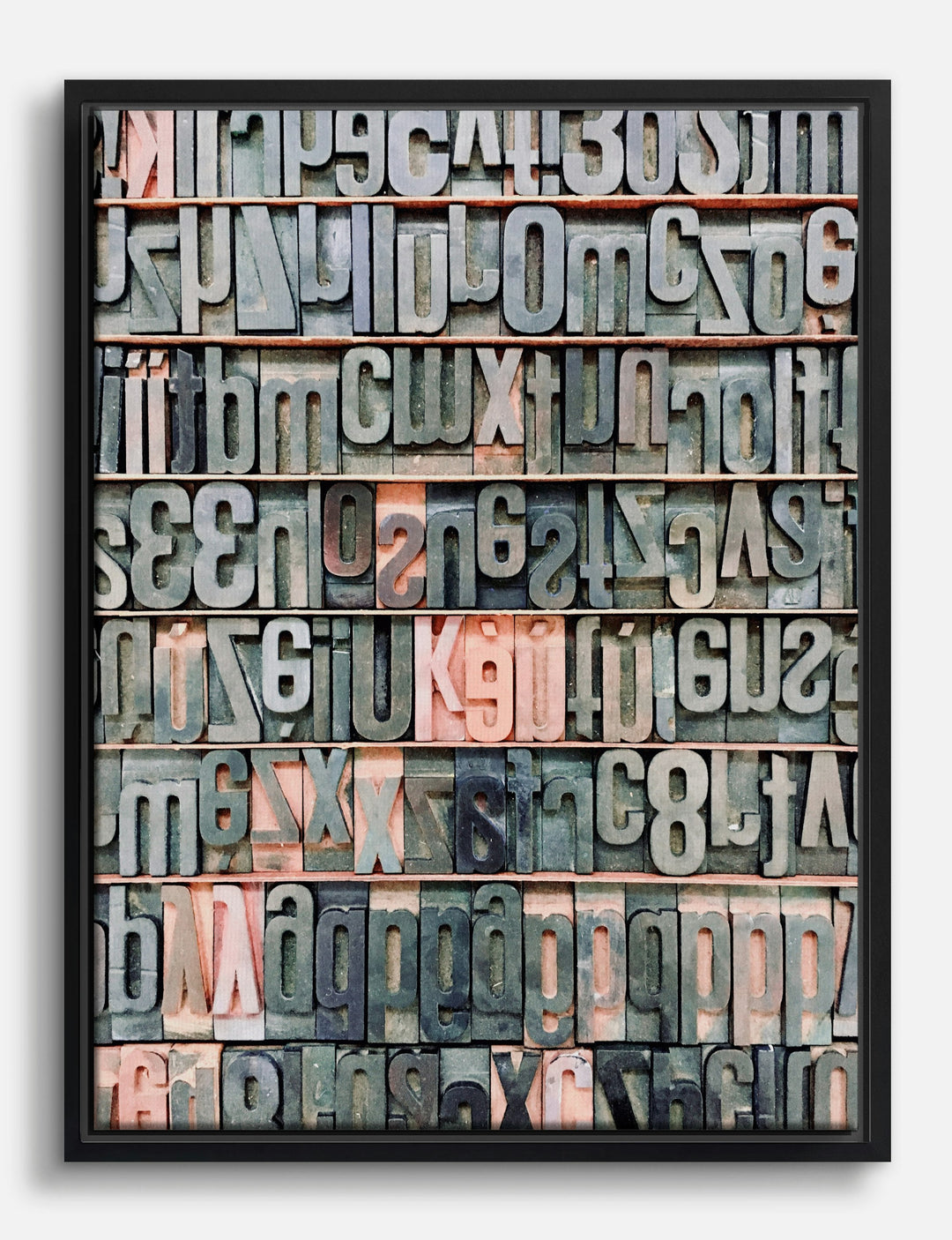 Lines of bold, vintage letters stack together in a playful, graphic mosaic—perfect for adding a dash of creative energy to your favorite space. This piece brings instant character and a touch of nostalgia, making it a standout for your office or living room. The muted greys and browns effortlessly complement modern, minimalist, or eclectic decor, so you can express your style with confidence. Let your walls tell your story—no renovations required.