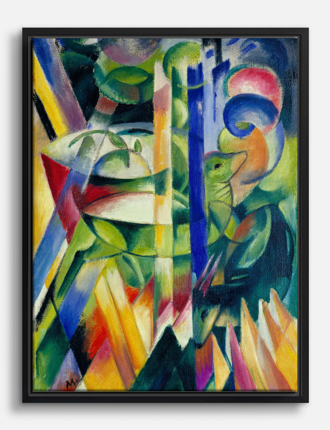 Bold color meets wild imagination in this Franz Marc piece, where vibrant greens and electric blues play together in a dynamic dance. It’s the kind of energy that instantly livens up your living room or sparks creativity in your office. The abstract, cubist shapes make it a conversation starter, while the playful palette fits right in with modern or eclectic decor. Let your space reflect your fearless style and celebrate your love for unique, expressive art—without breaking the bank.