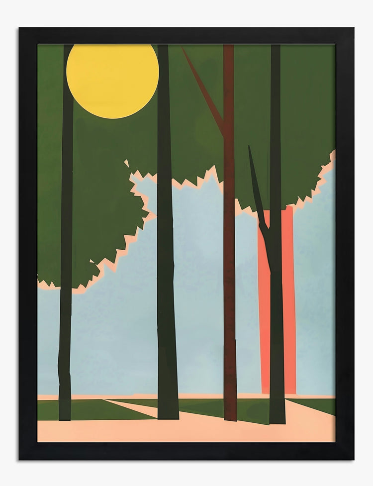 Step into a world where nature and art converge in a mesmerizing embrace. This piece brings the tranquility of a dusk-lit forest into your home, casting a serene glow that transforms any space. Perfect for your living room or bedroom, its lush green and warm yellow palette harmonizes beautifully with various decor styles. Let this artwork inspire a sense of peace and pride in your personal sanctuary.