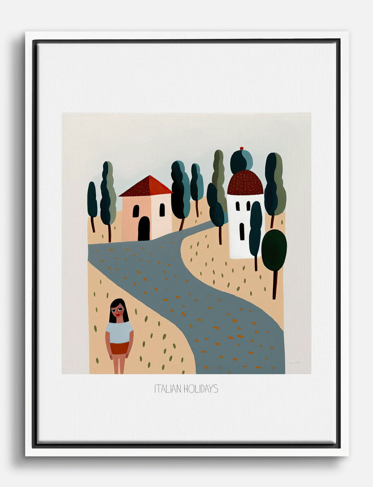Let your walls transport you to sun-drenched Italian hills, where winding roads and charming houses invite you to slow down and savor the moment. This playful, modern piece is perfect for adding a touch of wanderlust and warmth to your living room or bedroom. Its soft beige and serene blue palette pops against any decor, making your space feel instantly more stylish, relaxed, and uniquely yours. Bring home a slice of la dolce vita — no passport required.
