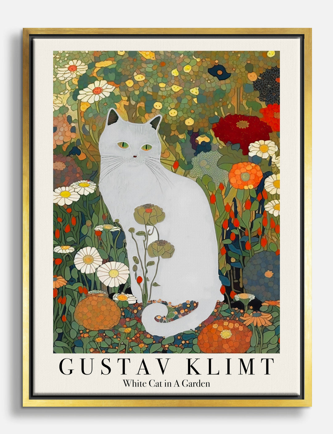 This enchanting white cat, poised among a riot of blooming wildflowers, brings a touch of whimsical elegance to any room. Let your walls pop with the playful charm and golden warmth of Gustav Klimt’s signature style—perfect for adding a dash of personality to your living room or bedroom. The lush greens, warm golds, and creamy whites make it easy to blend with both modern and vintage-inspired decor. With this piece, youll create a space that feels uniquely joyful and effortlessly stylish.