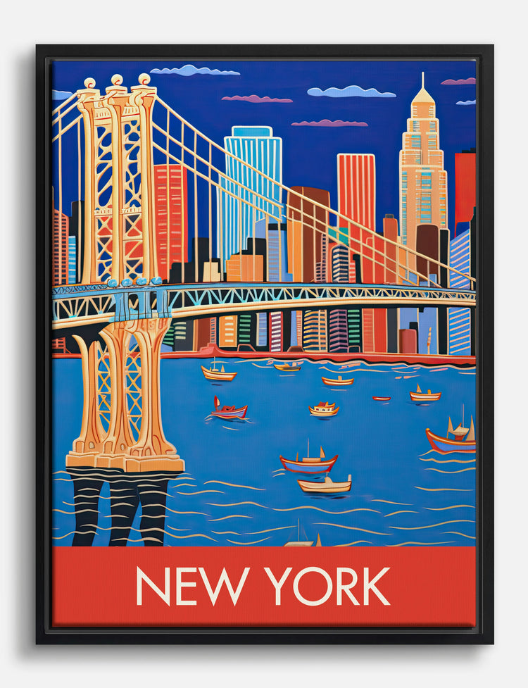 Bold lines and vibrant hues capture the iconic energy of New York in this lively cityscape. Let your space pulse with the unmistakable rhythm of the skyline—perfect for anyone who wants their walls to pop with personality and urban flair.
