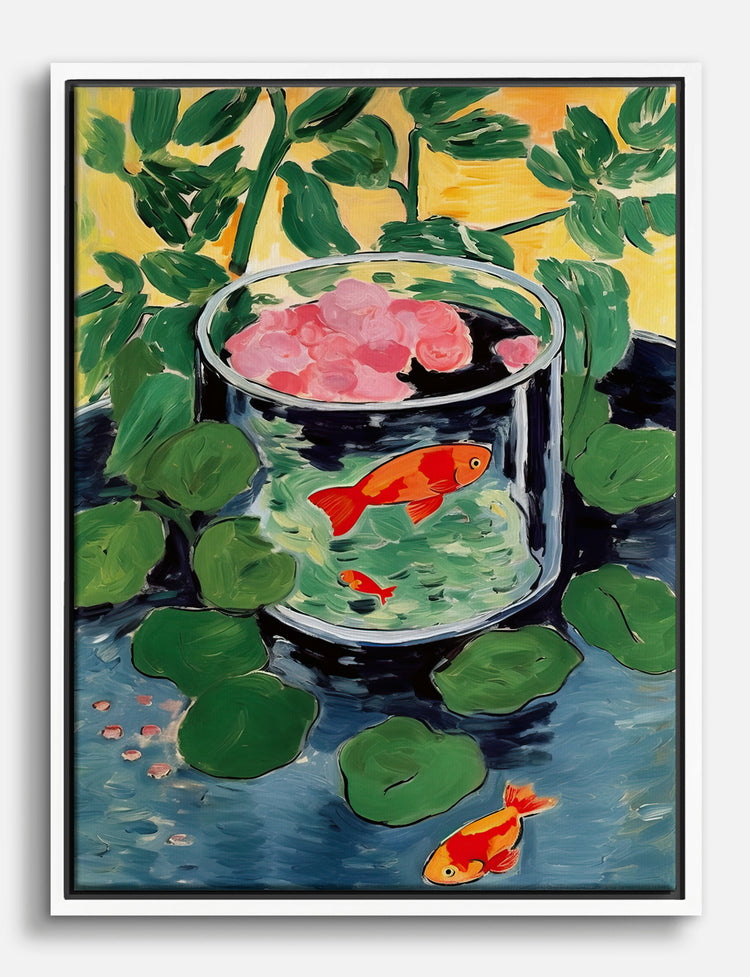 A splash of playful color and tranquil charm, this piece brings the serene world of Matisse’s goldfish right into your home. Lush greens and vibrant oranges pop against soothing blues, creating a mood that’s both lively and calming—perfect for brightening up your living room or bedroom. Youll feel a sense of effortless style every time you catch a glimpse, as this unique print transforms your space into a personal sanctuary of joy and creativity.