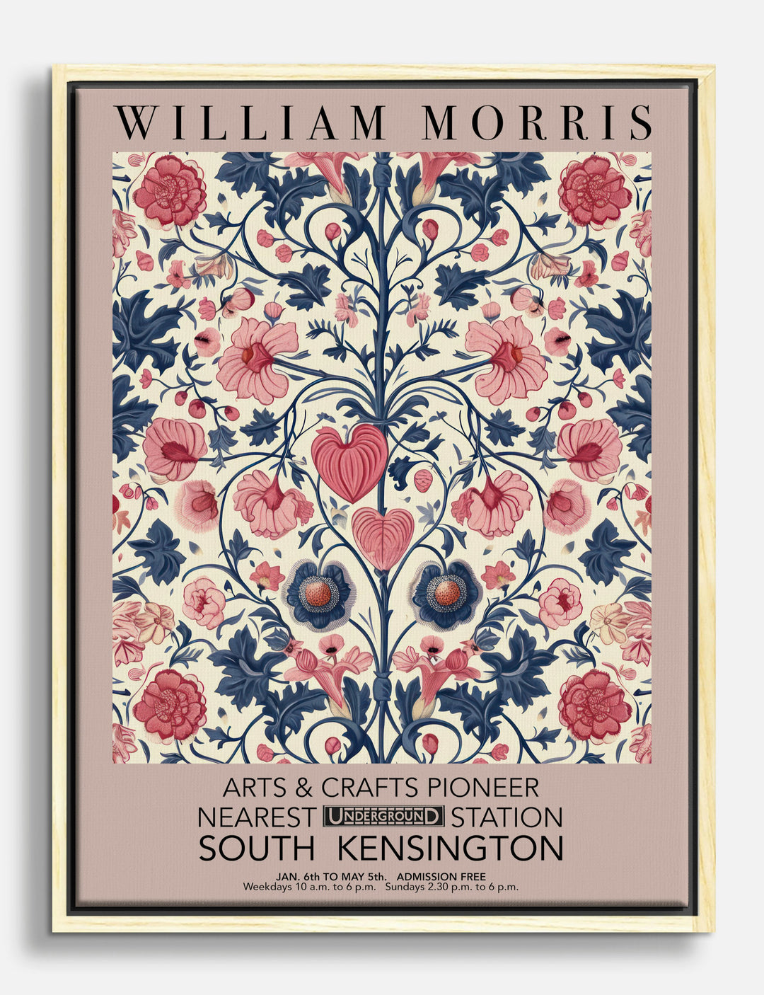 Fresh florals burst to life in this William Morris-inspired design—imagine the charm and warmth of a blooming English garden, right on your wall. The soft reds, pinks, and deep blues feel timeless yet totally on-trend, instantly uplifting your space with a sense of vintage elegance.