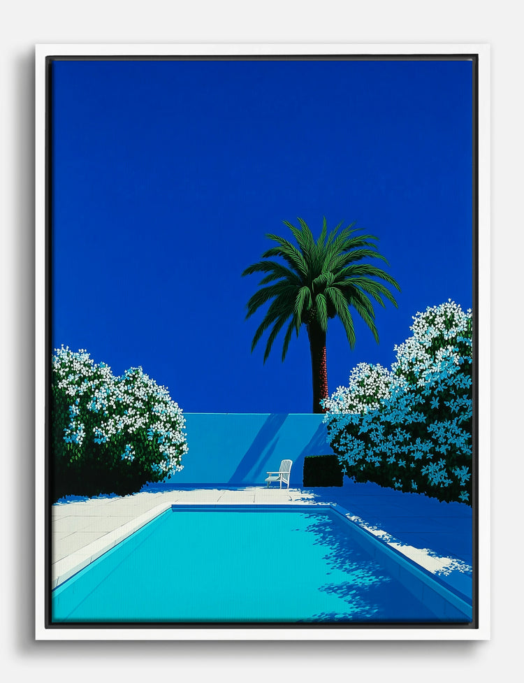 Dive into pure tranquility—crisp blues, lush palms, and a sun-soaked pool invite you to slow down and savor the moment. This piece instantly transforms your space with a fresh, modern vibe, sparking thoughts of endless summer afternoons. Picture it above your living room sofa or in a bedroom retreat, where the bold color palette pops against neutrals and complements both minimalist and eclectic decor. The vibrant blue and striking greenery bring a splash of energy, making any room feel brighter and more inviting. Youll love how this artwork effortlessly boosts your space, giving you a unique style statement that feels cool, confident, and refreshingly you. Affordable, accessible, and oh-so-unique—because your home deserves art that stands out.
