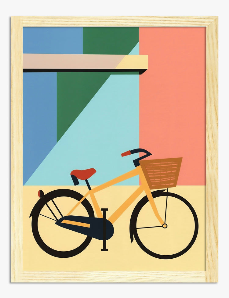 Feel the breeze of nostalgia with this vibrant depiction of a classic bicycle. Its bold colors and geometric simplicity invite a playful yet sophisticated vibe into your home. Perfect for your living room or office, this piece effortlessly complements modern and vintage decor alike. Let it inspire a sense of adventure and freedom every day, all without leaving your space. Transform your walls with ease and pride, because great style is just a pedal away.