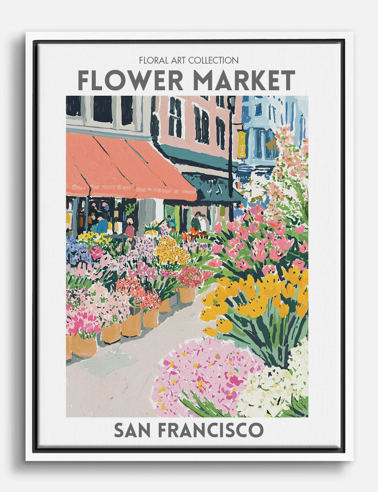 Immerse yourself in the vibrant charm of a bustling flower market with this stunning piece. Perfect for brightening your living room or bedroom, it brings a splash of color and joy to any space. The lively palette complements both modern and vintage decor styles, offering a unique touch of San Franciscos iconic flair. Let your walls bloom with pride and personality, effortlessly transforming your home into a stylish sanctuary.