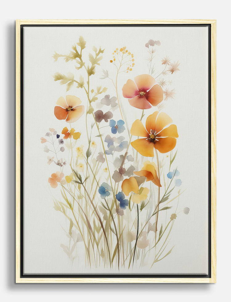 Like a quiet morning in nature, this gentle wildflower design brings a breath of calm to your space. Watercolor blooms in soft peaches, golds, and blues add a touch of effortless style that complements everything from modern neutrals to cozy boho corners. Hang it in your bedroom or living room for an instant lift—a little reminder that beauty can be easy, affordable, and totally you.