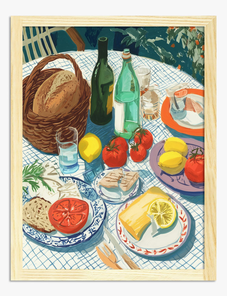 There’s something magical about a table set for a leisurely afternoon—ripe tomatoes, fresh bread, and the promise of good company. This piece bursts with sun-soaked color and casual elegance, instantly warming up your space with the relaxed charm of an outdoor lunch. Let your kitchen or dining room channel the effortless joy of a Mediterranean getaway. The vibrant reds, yellows, and greens pop against crisp linens, creating a look that’s both fresh and timeless. Whether you’re hosting friends or savoring a quiet meal, you’ll feel a sense of pride each time you catch a glimpse of this print. Style made easy, and every day feels a little more special.