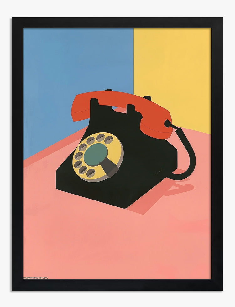Step back in time with this vibrant piece that brings a playful retro vibe to your space. The bold colors and iconic rotary phone design make it a perfect addition to your living room or office, infusing your decor with a touch of nostalgia. Let this artwork be a conversation starter, sparking joy and creativity every time you see it.