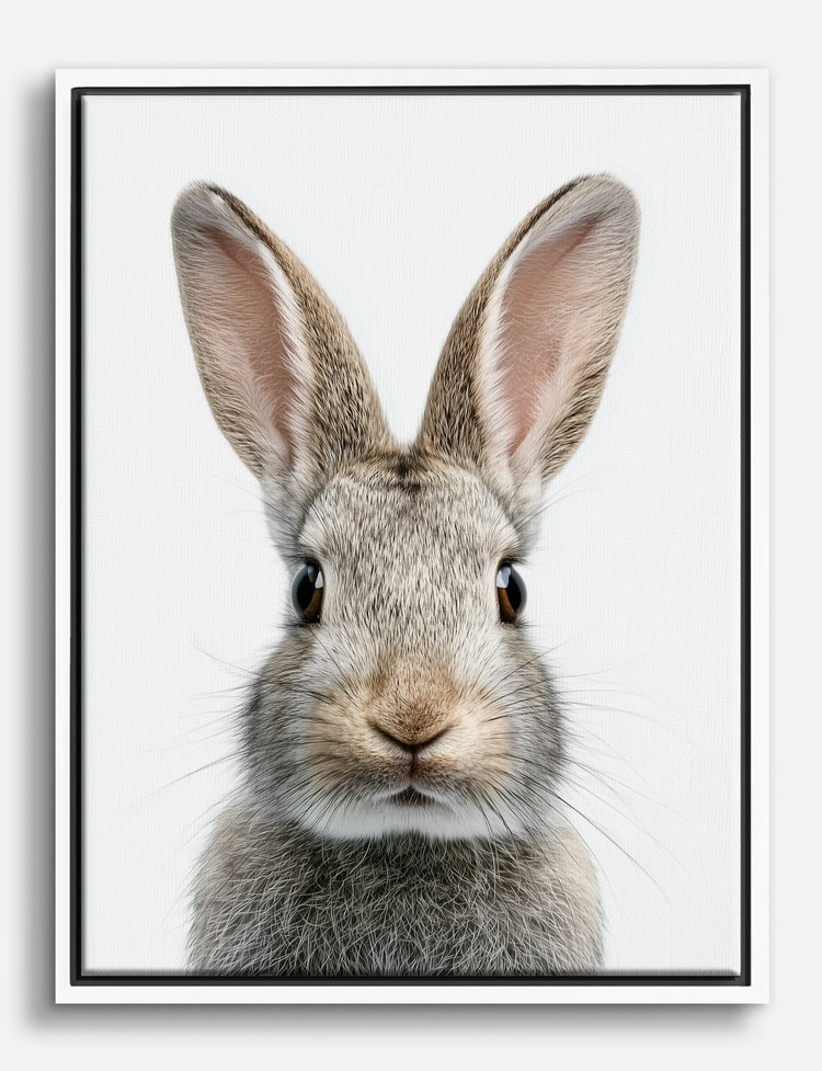 Meet the new star of your space—this rabbit’s gaze is pure magic. With its soft fur and those endearing, upright ears, this piece brings a fresh, playful energy to any room. It’s a reminder that a touch of personality can transform your walls into something truly special. Whether you’re looking to brighten your entryway or add a sweet accent to a modern bedroom, this print is the perfect finishing touch. The neutral palette of greys and whites pairs effortlessly with any decor style, from sleek minimalism to cozy farmhouse. Let this charming bunny greet you every day with a little dose of joy and a lot of style. Who says great taste can’t be fun and approachable?