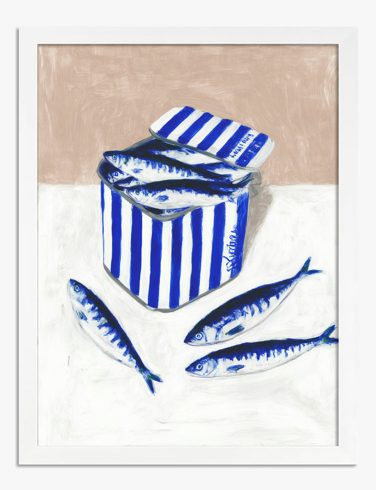 Unexpectedly playful, this piece brings a fresh twist to everyday still life. Vivid blue stripes and lifelike sardines pop against a creamy backdrop, giving your walls a dose of modern charm and a dash of quirky personality. Perfect for kitchens or dining spaces, it sparks conversation and invites a lighthearted, creative vibe into your home. The bold blue and white palette works beautifully with both minimalist and eclectic decor, making it easy to style your way. Youll love the sense of movement and simplicity—it’s a reminder that great design is about celebrating the little things. Let this art print infuse your space with a sense of originality and effortless cool.