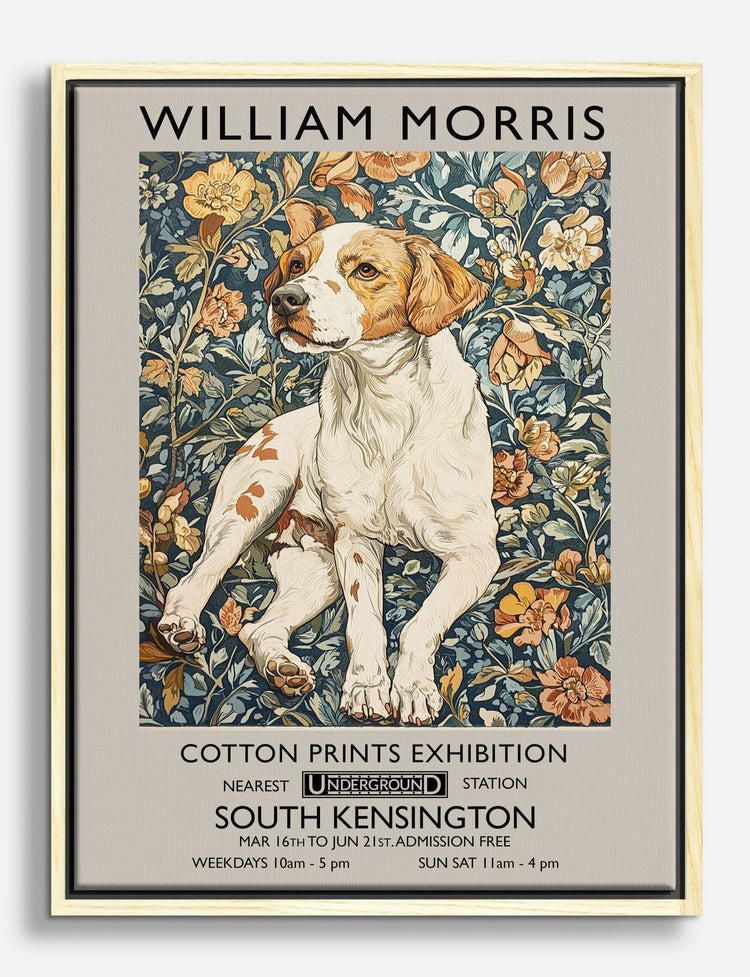Discover the charm of classic design with a playful twist. This delightful piece brings together the intricate floral patterns of William Morris with the lovable presence of a dog, creating a joyful blend of elegance and warmth. Perfect for your living room or study, its a conversation starter that adds a touch of vintage sophistication. The rich, earthy hues effortlessly complement a range of decor styles, making it a versatile addition to your home.