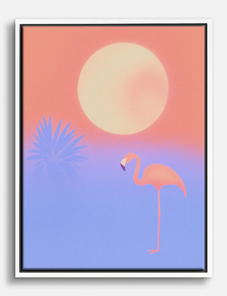 A sun-soaked oasis, right on your wall. This playful pink flamingo stands tall beneath a glowing pastel sun, inviting you to let go of the ordinary and embrace a bit of everyday magic. The dreamy blend of blush pinks and soft lavenders instantly brightens your space, creating a vibe that’s equal parts chill and uplifting.