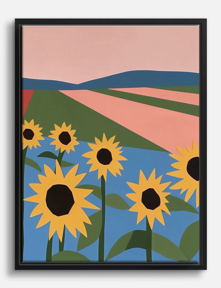Feel the warmth of endless summer days with Sunflower Bliss. This vibrant piece brings a splash of joy and color to your home, perfect for brightening up your living room or bedroom. The bold yellow sunflowers against a serene landscape evoke feelings of happiness and tranquility, effortlessly complementing modern and bohemian decor styles. Let your space bloom with pride and personality, making every day feel like a sunny escape.