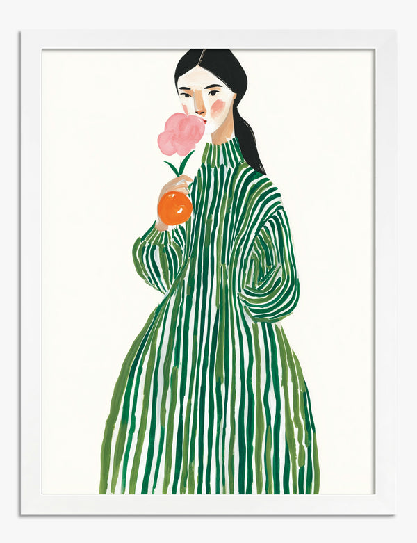 Striped Muse with Flower Art Print